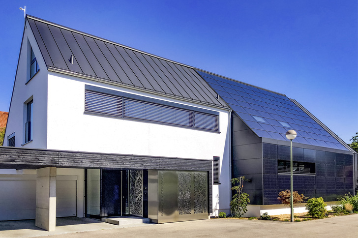 „Ein Haus ohne Photovoltaik ist heute nicht mehr zeitgemäß“, stand für Kammerer fest – und ebenso, dass die Solarmodule aus Gründen der Ästhetik schwarz sein sollten. Da seine Frau und er möglichst viel Energie selbst erzeugen wollten, sollte die Photovoltaikanlage zudem möglichst groß sein. Für den Architekten Rainer Drasch wurde dies zu einer Herausforderung. Wie seine Auftraggeber legt er Wert auf eine hohe Ästhetik, und die Tüftelei, wie und wo Solarmodule mit möglichst viel Gesamtleistung optisch ansprechend installiert werden könnten, begann.
