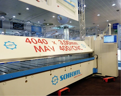 Die neue Spitzenkraft aus dem Hause Schechtl trägt den bescheidenen Namen MAV. Schechtl-typisch bedeutet dieses Kürzel: Motor-Abkant-Verstärkt. Verstärkt ist die MAV in jedem Fall. Problemlos biegt sie spezielle und komplexe Profile – sei es im industriell orientierten Handwerk oder im Sondermetallbau. Dabei bietet die MAV nicht nur die von Schechtl gewohnte Flexibilität, sondern auch unbändige Kraft. Nach dem Motto „Extra Masse – extra Klasse“ biegt die 4,40 m lange Schwenkbiegemaschine sage und schreibe Edelstahl bis zu 2,00 mm. Bei Aluminium sind es satte 4,5 mm und bei Stahl immerhin 3,00 mm. Selbstverständlich sind alle Wangen dank dem bewährten Klicksystem für segmentiertes Biegen vorbereitet. Eine motorische Biegewangenabsenkung gehört ebenso wie ein mechanisches Bombiersystem, ein Tiefenanschlagsystem und die CNC S-Touch-Steuerung zur reichhaltigen Maschinenausstattung. Der in Hannover vorgestellte Prototyp dieser verwindungsfreien Maschine vermittelte einen guten Eindruck davon, wie die Schechtl-Ingenieure auftretende Biegekräfte in der MAV absorbieren. Was die MAV leistet und für welche Zielgruppe sie sich besonders eignet, beschreibt BAUMETALL in einer der kommenden Ausgaben.