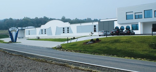 Für Wanderer und Kurzurlauber ist die Gegend um Friedewald immer wieder eine Reise wert und auch für Freunde der Klempnertechnik lohnt sich der Weg in die kleine Gemeinde im Westerwald. Schließlich können beim dort ansässigen Profiliermaschinen-Spezialisten Schlebach moderne Anlagen besichtigt und ausgiebig getestet werden. Seit kurzem gibt es in Friedewald ein weiteres Klempnerhighlight – den Schlebach-Neubau. Der erst kürzlich bezogene Fertigungs- und Verwaltungskomplex setzt eine mit dem Jahr 2009 eingeleitete Neuausrichtung des Unternehmens konsequent fort. Unübersehbar brachte das Jahr 2009 zahlreiche Veränderungen für den Profilier- und Blechbearbeitungsmaschinenhersteller mit sich. So stand beispielsweise bereits zum Jahresbeginn eine groß angelegte Imageänderung auf der Agenda. Dabei wurde das Schlebach-Rot gegen ein neues Blau im Firmenlogo ausgetauscht und konsequent auch auf alle Schlebachmaschinen übertragen. Und natürlich findet sich das neue Blau auch am kürzlich bezogenen Neubau wieder, auch wenn dort vorrangig dezentes Titanzinkgrau und weiß verputzte Fassadenbereiche vorherrschen. „Genau das hat einen guten Grund“, berichten die Schlebach-Geschäftsführer Heike Geisler und Holger Bartolosch. „An unserem Neubau wollen wir unseren Kunden zeigen, wozu unsere Maschinen in der Lage sind, nämlich zu weit mehr als der klassischen Profilierung von Stehfalzscharen.
