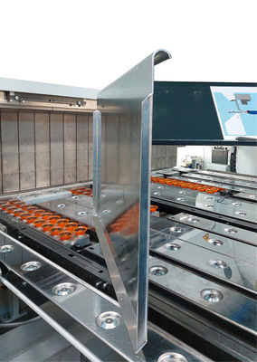 Die Wahl fiel auf das EVO Center. Die Maschine ist eine Entwicklung aus der Evolution-Reihe. Dies sind weitgehend automatisierte Hochleistungsmaschinen, die die Schröder Group hauptsächlich an industrielle Kunden liefert. Das EVO Center, das die Arbeitsweise bei Hupfeld & Schlöffel nachhaltig veränderte, hat eine Nutzlänge von 4040 mm und kann Stahlbleche bis 3 mm Stärke hochpräzise abkanten. Der Oberwangenhub von 850 mm und bis zu 400 mm hohe Werkzeuge bieten ausreichend Freiraum bei der Herstellung von Kästen. Das Umrüsten der Maschine erfolgt vollautomatisch. Das Werkzeugwechselsystem für Oberwangenwerkzeuge des EVO Center besteht aus zwei asynchron verfahrbaren Werkzeugwechslern mit jeweils einer Greifeinheit. Servoumrichter-gesteuerte Antriebe, motorische Biegewangenverstellung und Zentralbombierung stehen für Präzision, und zwei innovative Ausstattungsmerkmale sorgen dafür, dass jeweils alle Büge einer Seite vollautomatisch durchgeführt werden: Das Blech muss nur einmal angeschlagen werden und wird vom Saugplattenanschlag übernommen. Dank der Up-and-down-Biegewange werden nun Kantungen und Gegenkantungen gebogen, ohne dass man das Blech wenden muss.