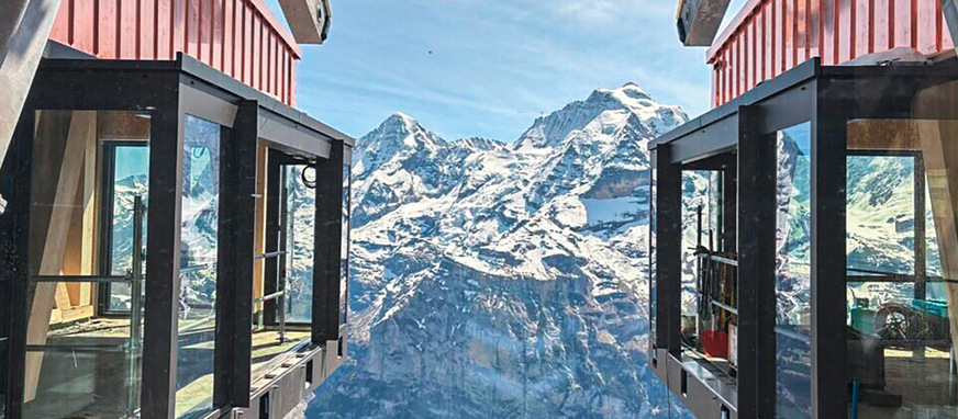 Im Dezember 2024 wurde im Zuge des Projekts Schilthornbahn 20XX eine extrem steile Seilbahn eröffnet. Die neue Direktverbindung zwischen Stechelberg und Mürren überwindet beeindruckende 159,4 % Steigung. Weltrekord! Für die 1194 m lange Strecke und einen Höhenunterschied von 775 m benötigt die Pendelbahn lediglich vier Minuten Fahrtzeit. Das System transportiert bis zu 800 Personen pro Stunde, wobei die beiden Seilkabinen bis zu 85 Personen aufnehmen können. Für die am Großprojekt beteiligten Spenglerinnen und Spengler definiert letztgenannte Ziffer jedoch keine Stückzahl, sondern einen Mengenwert.
