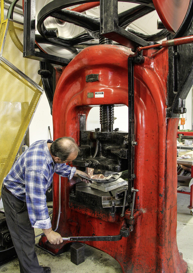 Wie fast alles bei Kisso sind auch die bissig aussehenden Drachenköpfe auf der Kisso-Internetseite nicht von der Stange zu haben. Die aus 1,00-mm-Messing angefertigten Formstücke sollen jedoch weder als Ausspeier noch als Ornament eingesetzt werden. Stattdessen verschönern die gefährlich dreinschauenden Messingdrachen schon bald imposante Blasebalghupen historischer Automobile. Angefertigt wurden sie nach historischer Vorlage eines Oldtimerfans, der froh darüber war, bei Kisso endlich die passenden Ersatzteile gefunden zu haben. Walter Bühlmanns Sohn Fabian erklärt: „Nicht immer haben wir das geeignete Gussmuster im Lager, doch das ist nicht weiter tragisch. Dank moderner CAD-Technik sind wir imstande, jede nur denkbare Form als Matrize und Stempel herzustellen. Das ist wesentlich einfacher und zudem wirtschaftlicher als früher.“