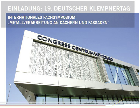 Am 24. und 25. Januar 2018 findet in Würzburg der Klempnertag statt. Die Adresse lautet: Congress Centrum Würzburg, Franconia-Saal, Kranenkai 34, 97070 Würzburg. Anmeldungen werden noch bis zum 9. Januar 2018 online unter www.zvshk.de , Suchwort: Ql76123064, entgegengenommen. Siehe auch Seite 12 in vorliegender Ausgabe.