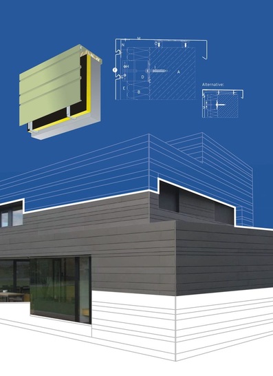 Durch die hauseigene Fertigung steht selbst ausgefallenen Kundenwünschen nichts im Wege. So verfügt die „La Linea“-Fassade des Einfamilienkubus über direkt in die Aluminiumpaneele integrierte Be- und Entlüftungsöffnungen. Sonst übliche Sockeldetails oder zur Hinterlüftung erforderliche Mindestabstände sind somit nicht nötig – die Fassade kann ohne störenden Absatz bis zum Boden geführt werden. Ebenso ist ein absolut exakter Fassadenabschluss ohne unschöne Hinterlüftungsfuge an der Attika möglich.