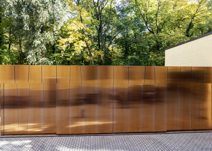 Auch Spenglermeister Andreas Fella aus Hammelburg hat sich diesem Trend verschrieben. Regelmäßig sorgen seine aus Verbundplatten hergestellten High-Tech-Fassaden für Aufsehen – zuletzt beim European Copper in Architecture Award 2013. Das dort nominierte Radiologiezentrum in Hof besticht durch eine mit großformatigen Tecu-Bond-Platten bekleidete Kupferfassade (BAUMETALL 8/2013, Seite 19). Dass diese Fassadentechnik durchaus auch für kleinere Projekte geeignet ist, beweist der inno-vative Handwerker immer wieder aufs Neue. Ge-meinsam mit dem Team seines Fachbetriebes, der Hammelburger Franz Kraus GmbH & Co. KG, realisierte er beispielsweise den Eingangsbereich eines Gebäudes in Windsheim oder eine imposante Garagentoranlage in München (Titelbild). Auch hier montierten die Spezialisten edle Tecu-Bond-Kupferelemente.