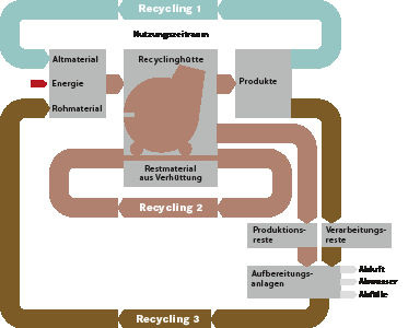 Die ehemalige Oberleitung aus Stuttgart lagert auf dem Hof des Kupferherstellers neben schweren Roh-Kupferbarren (sogenannten Brammen) und wartet dabei auf bessere Zeiten. Die Wiederverwendung von Kupfer ist so alt wie die Verwendung dieses Metalls selbst. Berücksichtigt man durchschnittliche Rücklaufzeiten beziehungsweise Nutzungszeiten von Kupfer in allen Anwendungsbereichen, ergibt sich eine Recyclingrate von nahezu 80 %. Die Energieeinsparung bei der Kupfergewinnung aus Recyclingmaterial (Sekundärmetall-erzeugung) gegenüber der Gewinnung aus Erzen, beträgt je nach Schrottart sogar bis zu 92 %. Dieser Kreislauf entlastet die Umwelt von direkten und indirekten Abfällen und trägt zur Schonung wertvoller Ressourcen bei.