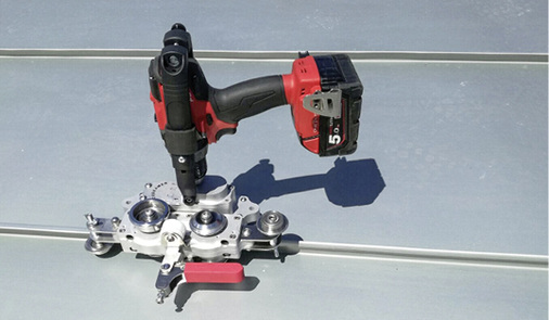 Der österreichische Werkzeughersteller BiegetecAT bringt mit dem Accu Seamer eine Neuheit auf den Markt, mit der sich Falze laut Hersteller besonders leicht schließen lassen. Das nur 3,8 kg leichte Gerät ist kombinierbar mit herkömmlichen, marktüblichen Akku- und Elektrobohrmaschinen und wird mit einem Schnellspannhebel justiert. Mit einfachen Handgriffen kann es für jede Falzrichtung eingestellt werden. Der Accu Seamer eignet sich zum Schließen von Winkelstehfalzen bzw. einfachen oder doppelten Stehfalzen mit Höhen von 25, 32 bzw. 38 mm an geraden und gebogenen Profilscharen.