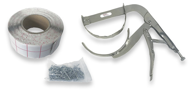 Die M.A.S.C.-Rinnennaht-Zwinge und die M.A.S.C.-Nahteinlage Nanofil sind ein Traumpaar. Das neue Duo eignet sich hervorragend zur Herstellung von wasserdichten Stößen an halbrunden Metalldachrinnen. Und so funktioniert’s: