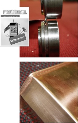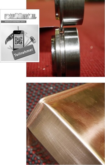 Ein Falz wie aus dem Bilderbuch! Weder Hammerschläge noch hässliche Zangenabdrücke stören das Bild. Und das Beste ist: Die Falzqualität ist so perfekt, dass sie in geraumer Zeit zur Fertigung von Meisterstücken eingesetzt wird. Doch wie ist so etwas möglich? Die Antwort kommt aus Stuttgart: An der Robert-Mayer-Schule entwickelte Ausbilder Gert Brenner mit seinen Meisterschülern spezielle Sickenwalzen. Diese Formwalzen erlauben das einfache Anformen eines Stehfalzes in nur einem Arbeitsgang – filigran, perfekt und optisch ansprechend. Was selbst Fachleute kaum zu glauben wagen: Das System eignet sich sogar zur Herstellung geschwungener Falze in sehr engen Radien. Einziger Wermutstropfen: Die Spezial-Sickenwalzen sind auf dem freien Markt nicht erhältlich. Sie werden im Auftrag der Robert-Mayer-Schule speziell für die Meisterschüler angefertigt. Tipp: Durch das Einlegen einer Weich-PVC-Zwischenlage ist es möglich, den an der Sickenmaschine in geradem Zustand geformten Falz sogar durch eine Rundbiegemaschine zu führen. Aha – so entstehen also traumhaft schöne Falzverbindungen bei den Blechmasters in Stuttgart.