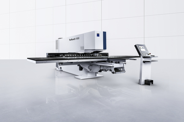 entstehen. Die TruPunch 1000 eignet sich ideal für den Einstieg in die professionelle Stanzbearbeitung sowie für kleinere Handwerksbetriebe. Die Maschine bleibt auch bei geringerer Auslastung wirtschaftlich und braucht zudem lediglich 6000 x 5825 mm² Aufstellfläche. Abgebildet ist die TruPunch 1000 auf Seite 44.