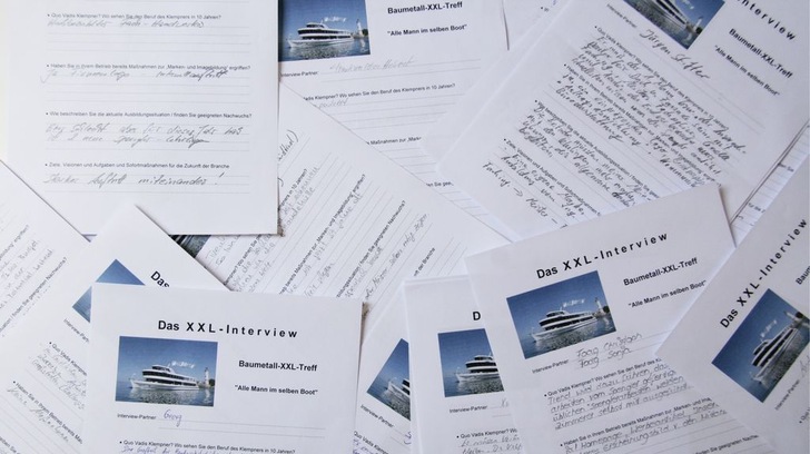Auf dem Tagungsboot befragten die Mitglieder des BAUMETALL-Treffs ihre Gäste in einem groß angelegten Interview zu den Themen „Marken- und Imagebildung“ sowie „Quo vadis Klempner?“. Noch unmittelbar auf der Tagung werteten Sie knapp 100 Fragebögen aus und kamen dabei aus dem Staunen nicht mehr heraus, denn die Antworten waren nahezu deckungsgleich. Nachfolgend veröffentlicht BAUMETALL die gestellten Fragen und verschafft einen Überblick über die Ergebnisse. Exemplarisch stehen daher die meistgenannten Antworten hinter der jeweiligen Interview-Frage. Wie gut, dass auf zahlreiche Interview-Ergebnisse noch direkt auf dem Tagungsboot reagiert werden konnte.