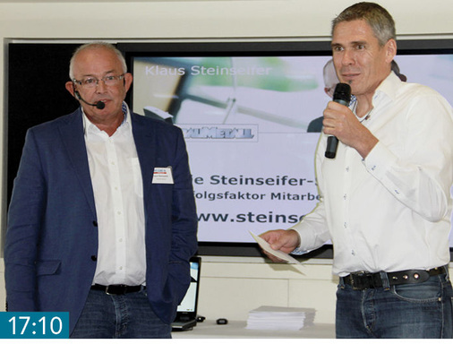 17:20 Unternehmensentwicklung Als Seminarleiter, Unternehmenstrainer und Handwerksmeister hat Klaus Steinseifer sein Ohr immer dicht am Geschehen. Er weiß genau, wo im Handwerk der Schuh drückt und welche Schwachstellen in den Unternehmen verbessert werden können. Mit provokanten Fragen zur Ausbildungssituation animiert er die Teilnehmer, aktive Beiträge zum Thema „Zukunftssicherung im Unternehmen“ zu leisten.