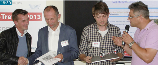 17:45 Fachkompetente Jury Die Spannung steigt! Wer sind die Preisträger des BAUMETALL-Inovationspreises 2013 – welche Ausbildungsbetriebe sind die Vorbildlichsten? Für die Juroren Prof. Dr. Peter Niedermaier (FH Rosenheim), Gert Brenner (RMS Stuttgart), Fritz Reinbold (Fachbetrieb Reinbold und Innovationspreis-Vorjahressieger), Klaus Steinseifer (Steinseifer-Seminare) und Mark Holzwarth (Fachbetrieb Hessel und BAUMETALL-Treff-Mitglied) war die Entscheidungsfindung schwierig.