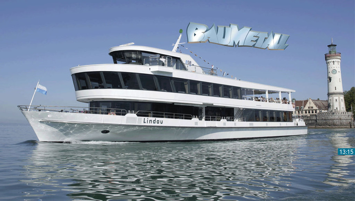 13:15 Zustieg Nachdem einige Veranstaltungsteilnehmer in Lindau zugestiegen sind, fährt das BAUMETALL-Boot MS Lindau weiter nach Bregenz.
